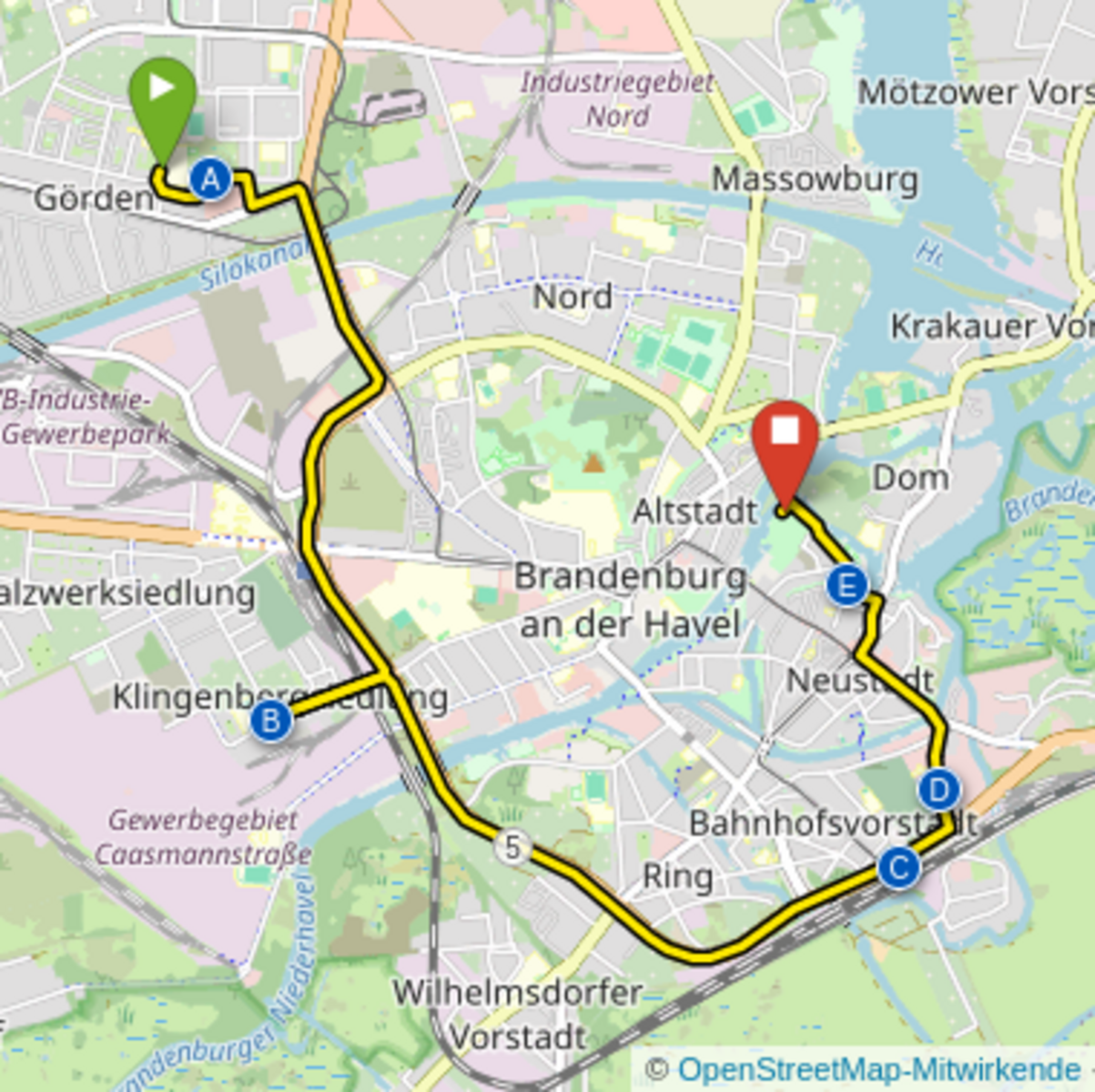 Die Kidical Mass in Brandenburg an der Havel startet an der Wilhelm-Busch-Schule in der Beethovenstraße auf dem Görden um 15:00. Nach der Überquerung des Silokanals auf der Gördenbrücke biegen wir auf den Zentrumsring ein, von dem wir aus einen Abstecher zur Klingenberg-Grundschule in der Klingenbergstraße machen. Von dort geht es gegen 15:30 Uhr weiter den Zentrumsring entlang, wobei wir einen kurzen Halt an der Kreuzung mit der Wilhelmsdorfer Straße einlegen werden. Am Hauptbahnhof vorbei geht es über die Geschwister-Scholl-Straße (Achtung Straßenbahn-Schienen am Bermuda-Dreieck!) und Sankt-Annen-Straße stadteinwärts, und am Neustädtischen Markt vorbei über Augustastraße und Hammerstraße zum Packhofgelände, wo wir gegen 16:30 Uhr ankommen.