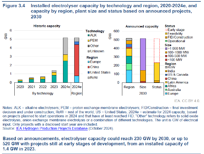 IEA (International Energy Agency) “Global Hydrogen Review 2024”, Grafik 3.4, S. 67: