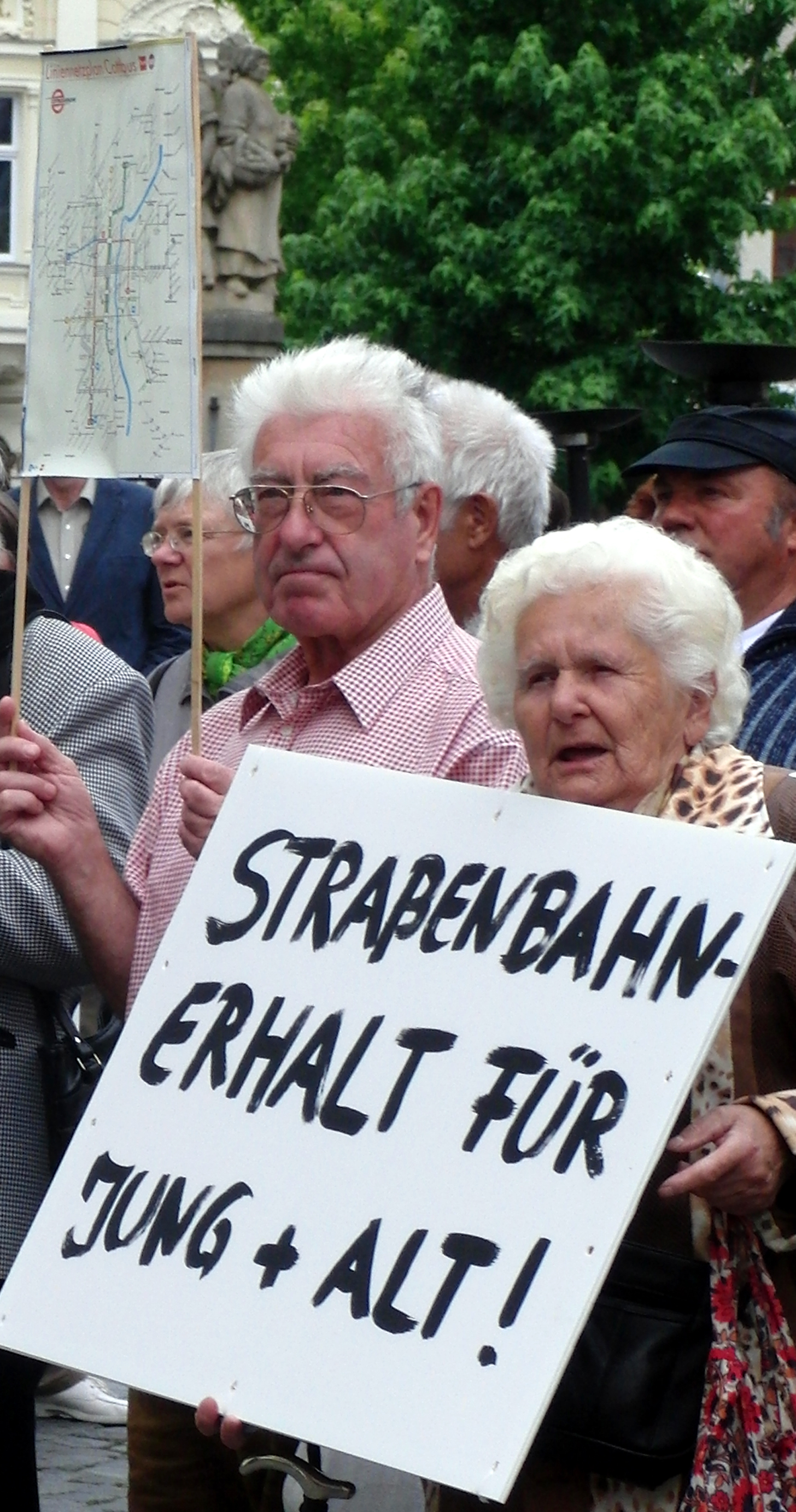Am 15.6.2009 sollten die Stadtverordneten über die Einstellung des Straßenbahnbetriebs entscheiden. An den vorausgehenden Protesten auf dem Altmarkt beteiligte sich auch Günter.