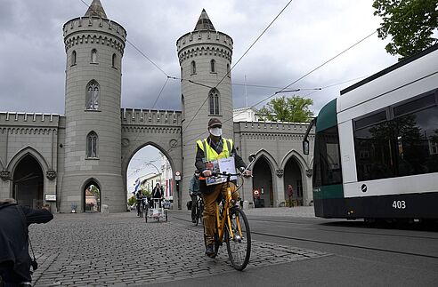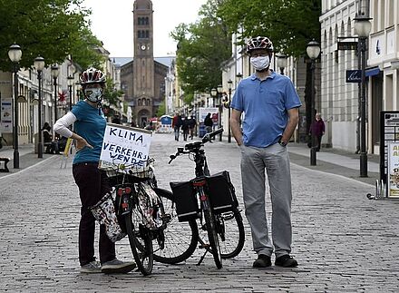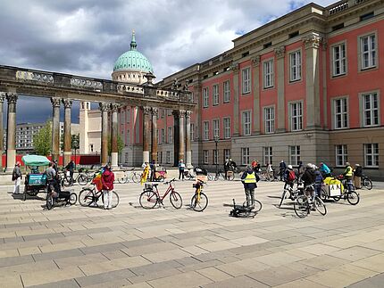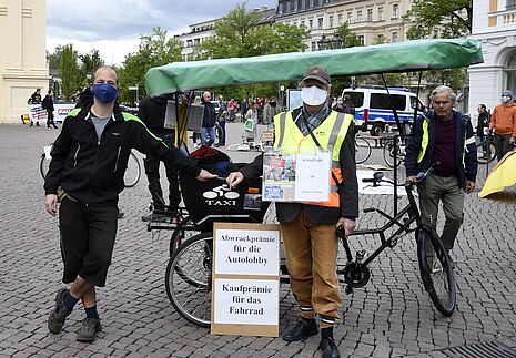 Unter den aktuellen Kontaktbeschränkungen war an Großdemos zum 1. Mai leider nicht zu denken. In Potsdam hat sich dennoch ein kleiner Kreis aus Engagierten zusammengefunden, um ein Zeichen für eine bessere Verkehrspolitik zu setzten. Die Behörden hatten die Demo mit bis zu 20 Teilnehmer*innen genehmigt und auf die Einhaltung der Abstands- und Hygieneregeln geachtet. Die VCD Ortsgruppe Potsdam war mit Anja, Detlef, Jan und seiner Rikscha natürlich auch vertreten.