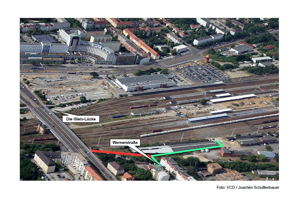 Der fußläufige Zugang zum Stadtzentrum vom zukünftigen Nordausgang des Bahnhofs ist durch die Wernerstraße kürzer und attraktiver als durch die Schillerstraße.