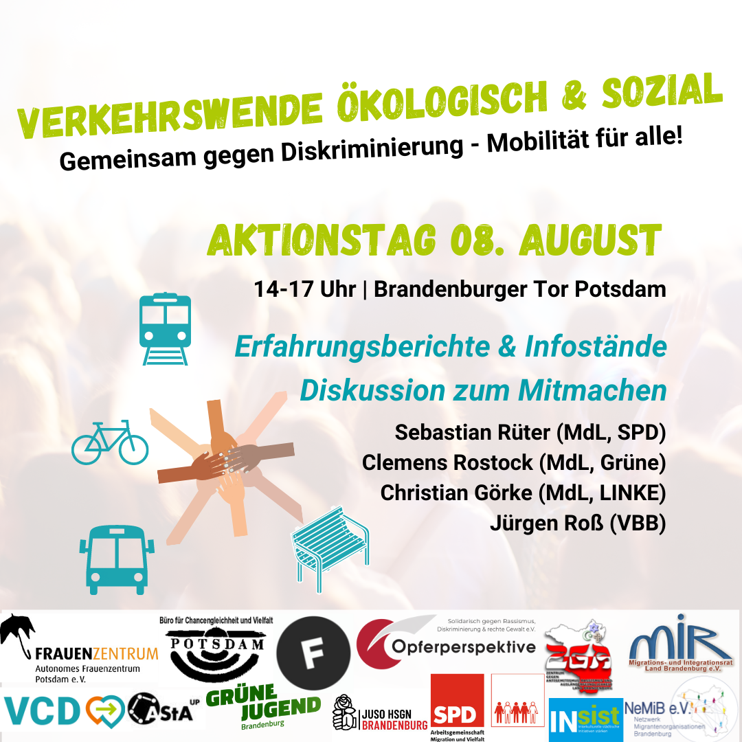 Mobilität bedeutet gesellschaftliche Teilhabe. Doch aufgrund von Diskriminierung oder Gewalt wird die Mobilität vieler Menschen eingeschränkt. Sie haben keinen vollen Zugang zum öffentlichen Raum und Verkehr oder können sich dort nicht sicher fühlen. Das wollen wir ändern!