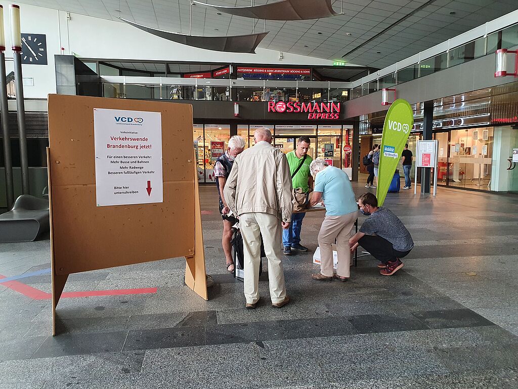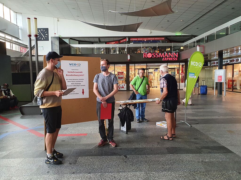 Die DB gestattete uns, im Empfangsgebäude des Cottbuser Bahnhofs Unterschriften zu sammeln und das dafür erforderliche Equipment dort auch für einen bestimmten Zeitraum zu lagern.
