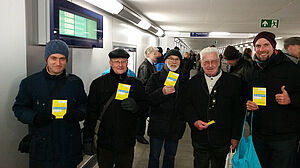 Wir hatten die Hoffnung, dass vorstehende PM noch vor der Tunneleröffnung in der LR erscheinen würde, um so die Cottbuser auf unsere Aktion aufmerksam zu machen. Das hat leider nicht geklappt. Wir verteilten unsere "Gelben Karten" trotzdem vor dem und auch im Tunnel.