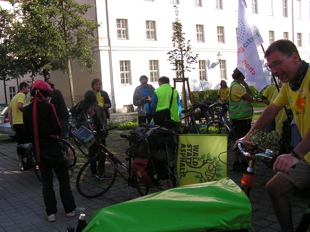 lautstarke Begrüßung der Radler:innen an der Breiten Straße zwischen Zeppelinstraße und Naturkundemuseum